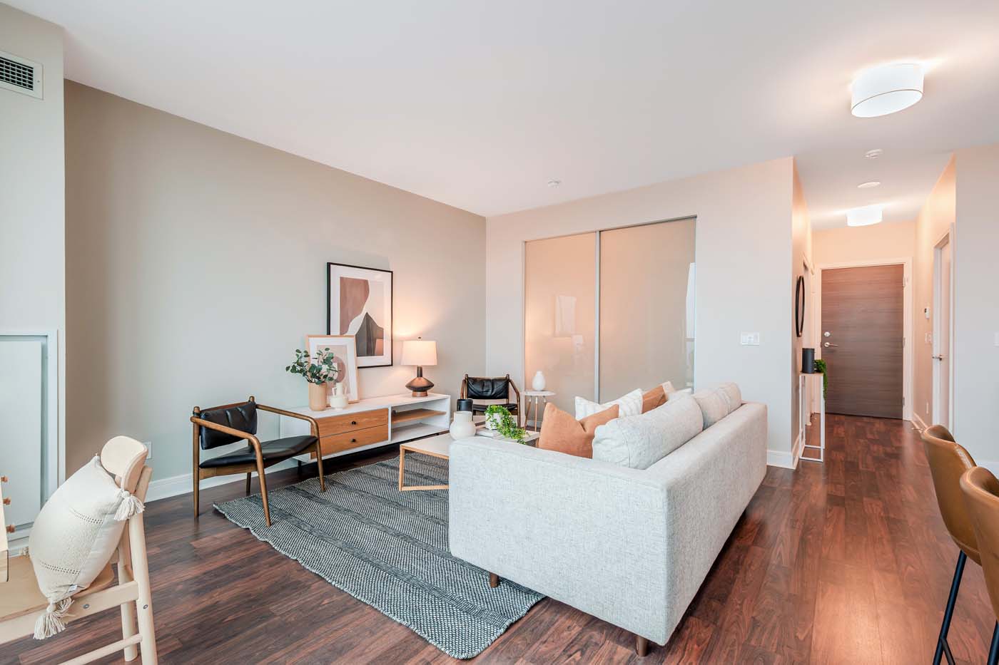 Residents of Scenic on Eglinton enjoy a full range of premium amenities including a 24-hour concierge, indoor pool, fully equipped fitness centre, sauna, party room, and an outdoor terrace with BBQs.